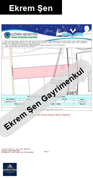 aktif kullanılan su kanalına bitişik sulanır arazi gönen merkeze çok yakın i̇ster işlenebilir ister yatırımlık değerli arazi