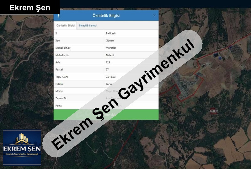 balıkesir gönen muratlar mahallesi’nde bulunan 2018 m² tarlam satılıktır.