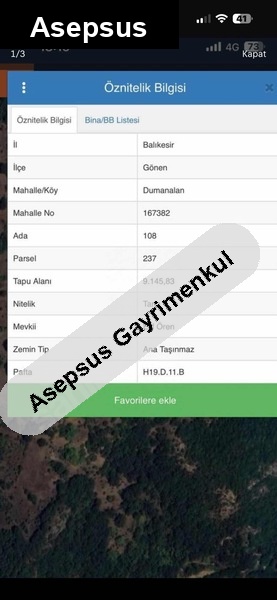 balikesi̇r gönen dumanalan'da 9.145 dönüm satilik tarla