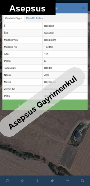 balıkesir / susurluk / balıklıdere mahallesi 191 ada 5 parsel.